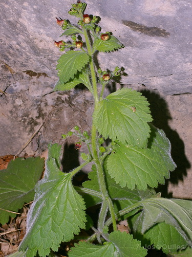 Blüten 8 - 13 mm lang, Kronröhre bauchig, gelblich oder grünlichbraun, Kronoberlippe braunrot, Staubblätter nicht aus der Krone ragend Staminodium eiförmig, ca so lang wie breit Kelchzipfel oval, stumpf, mit deutlichem, ganzrandigen oder gezähntem Hautrand Frucht eiförmig, ledrig Stängel dicht mit anliegenden Drüsenhaaren behaart Blätter meist ungeteilt, selten leierförmig, mit