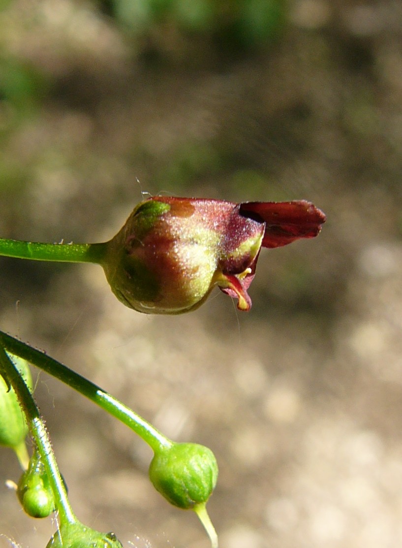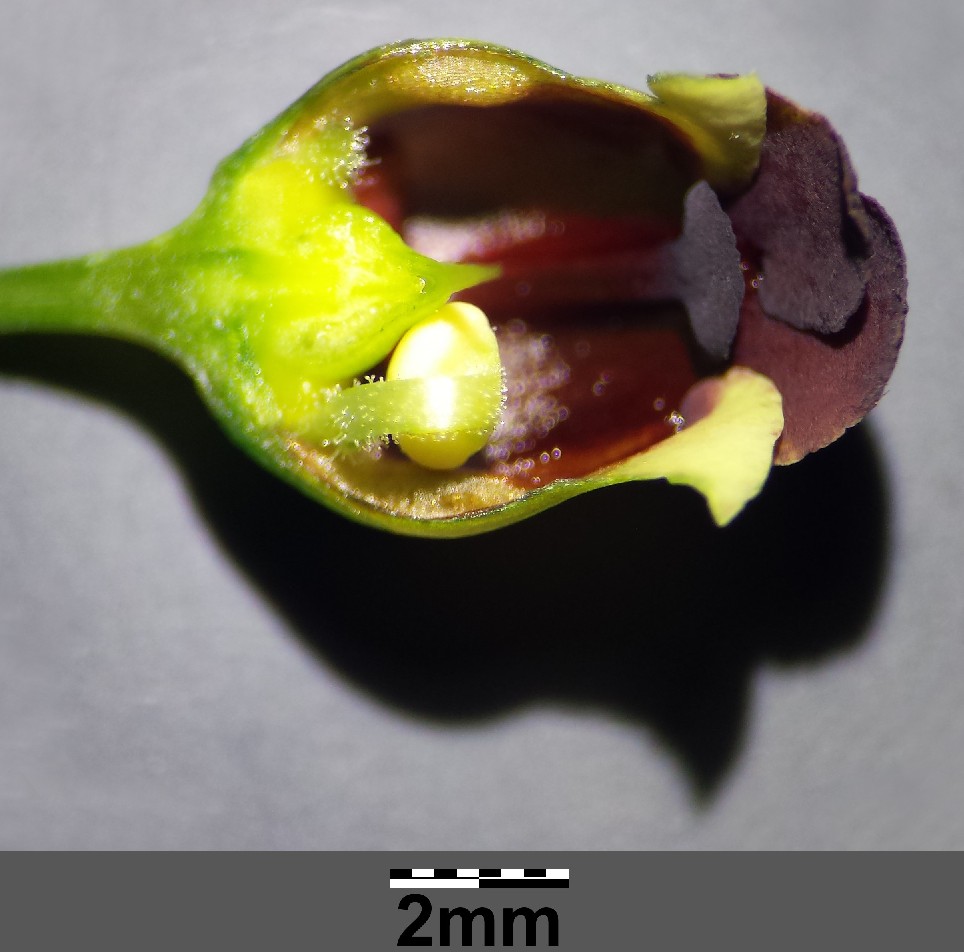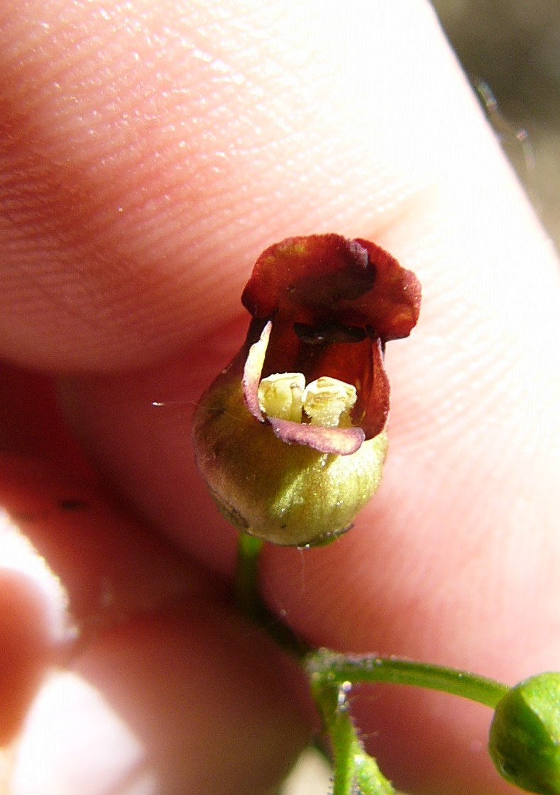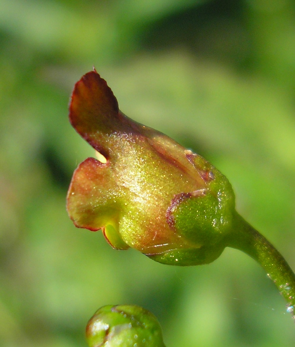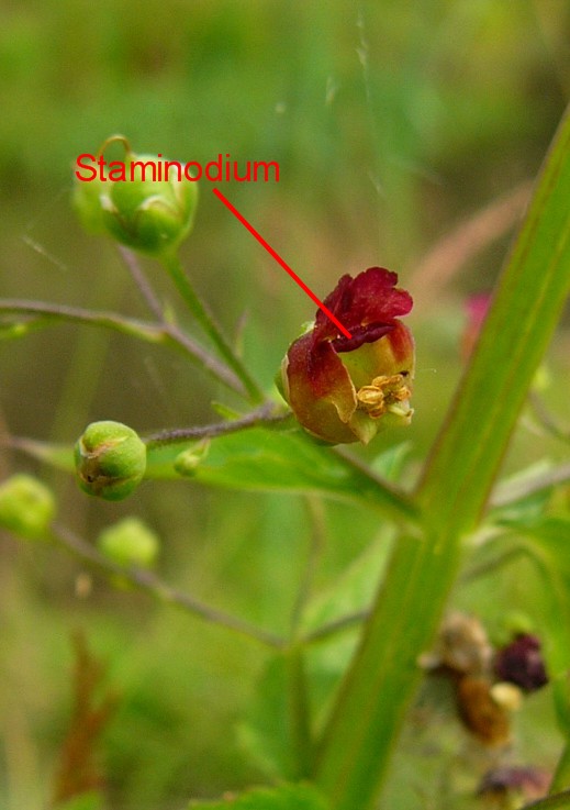 kahl, Blüten rötlich, Staminodium breit, Blätter ungeteilt,