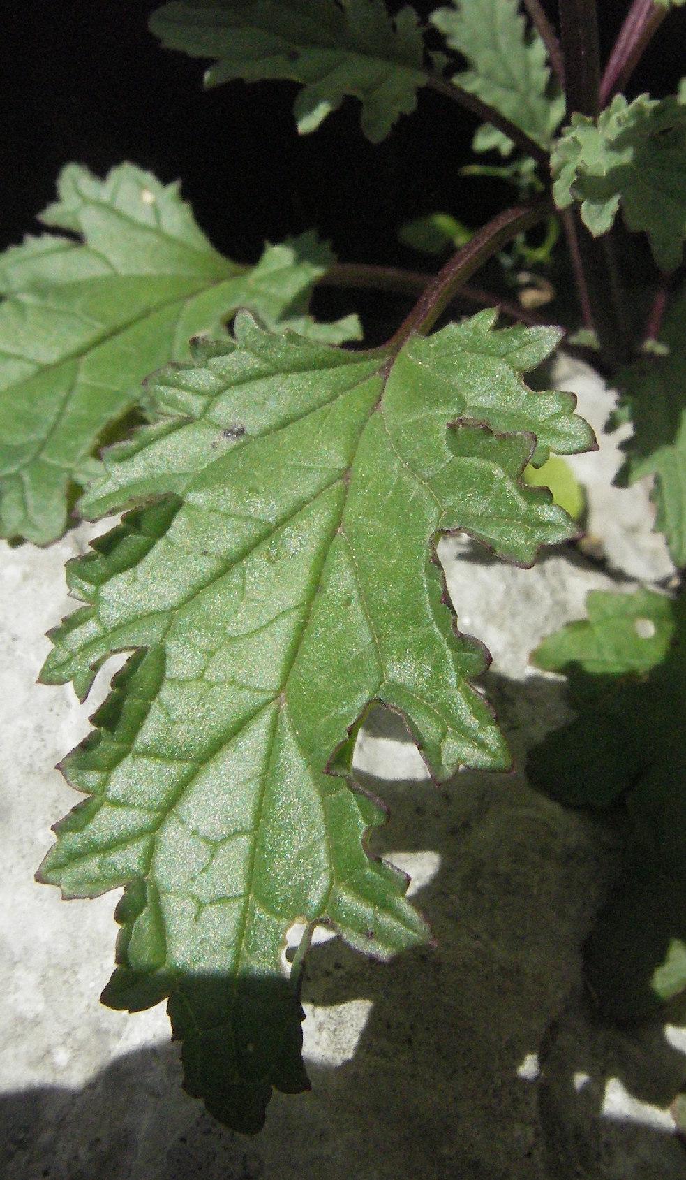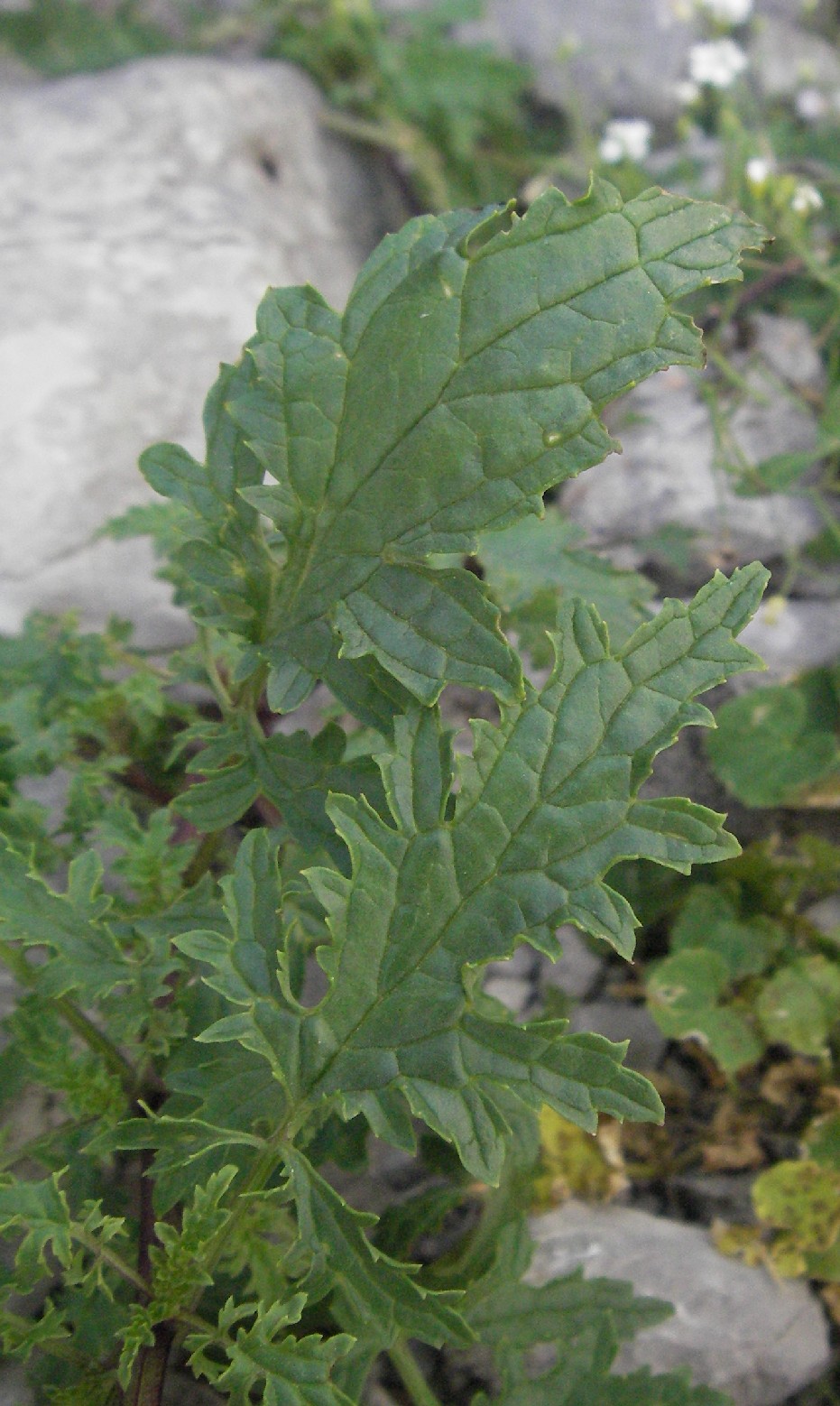 Blätter grün, dünn, nicht fleischig, Fiederabschnitte spitz, Adern deutlich