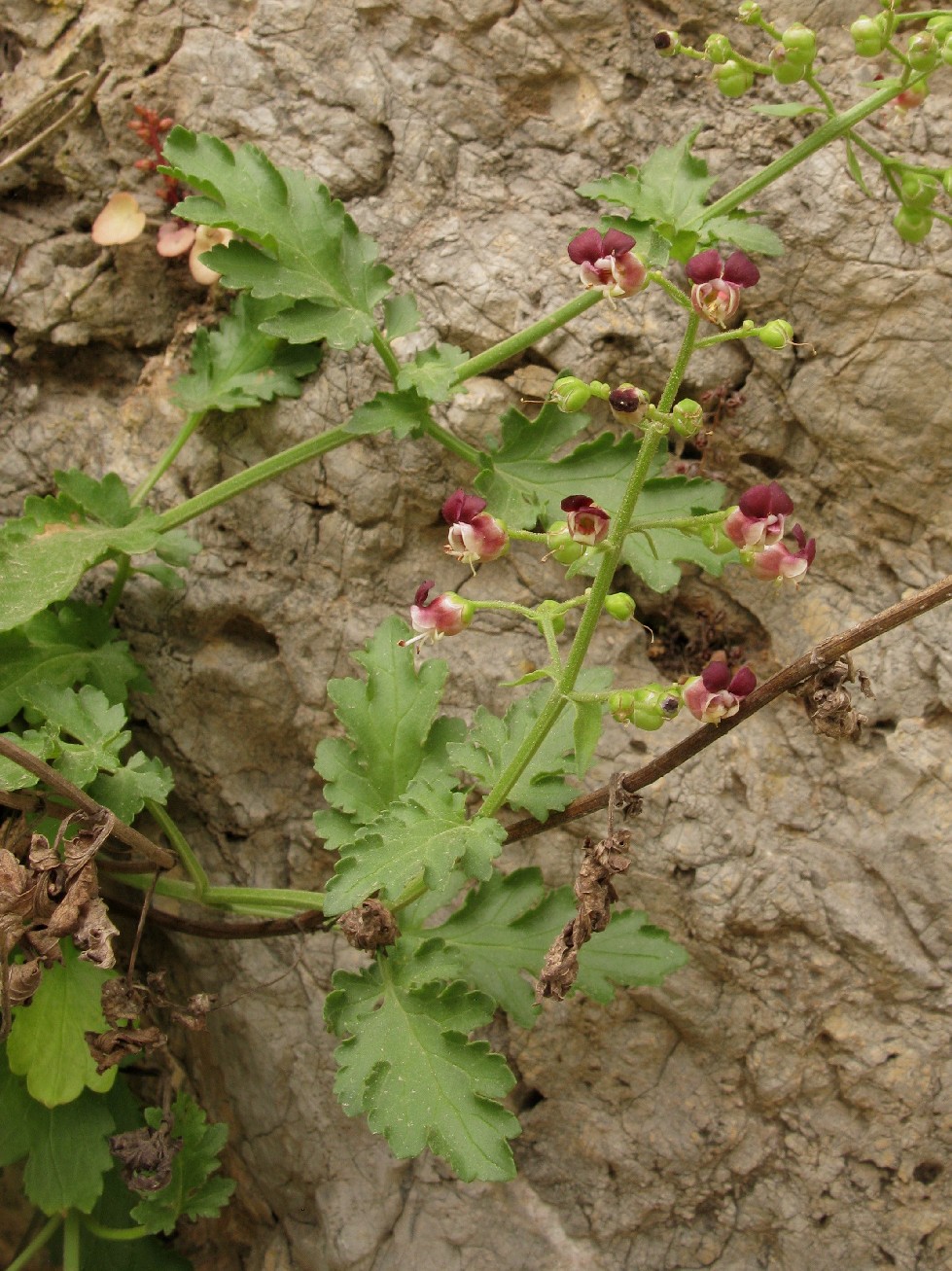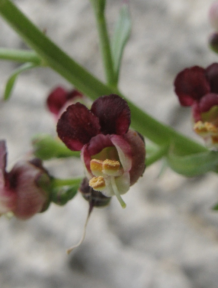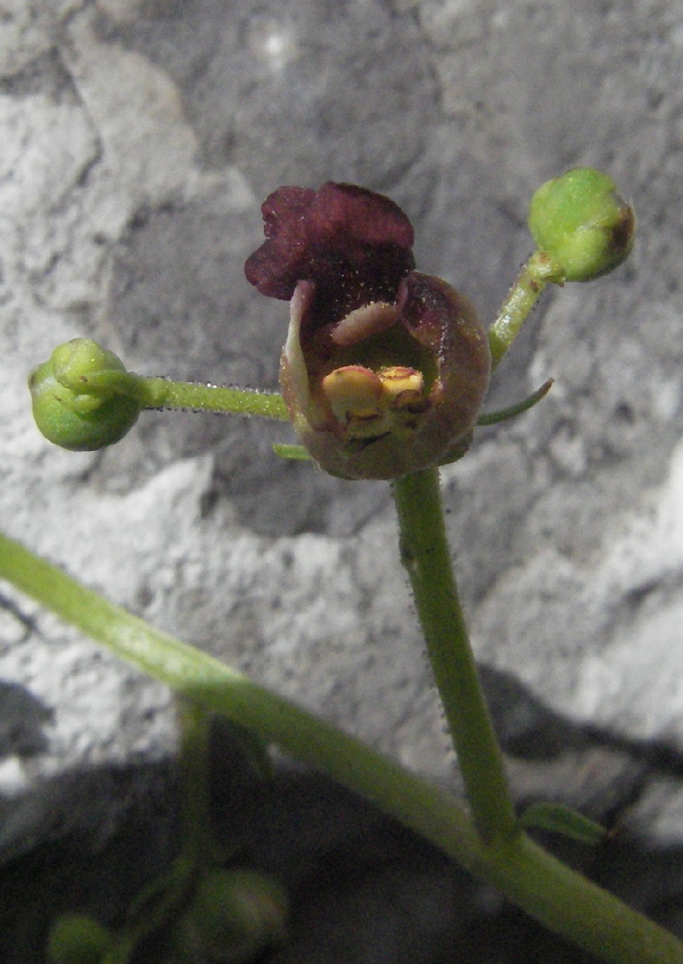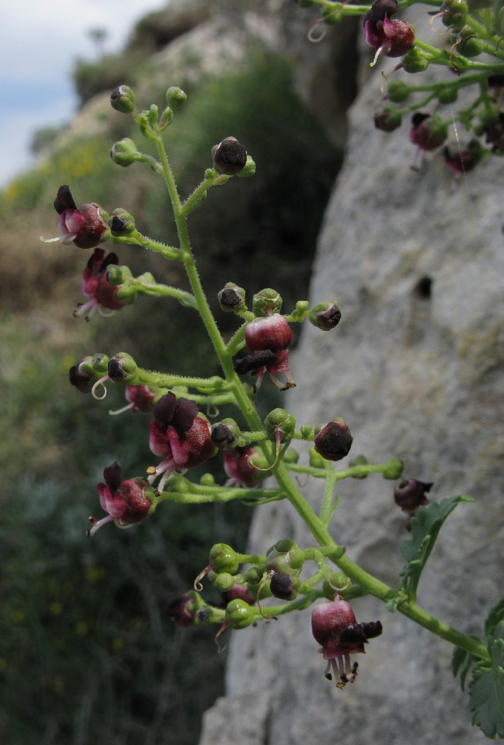Scrophularia - Blüten rötlich, Staminodium breit, Blätter gelappt oder einfach fiederschnittig