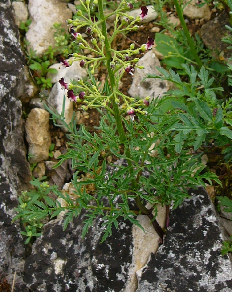 Scrophularia - Blüten klein, dunkelviolett/weißlich, Staminodium fehlend oder linealisch