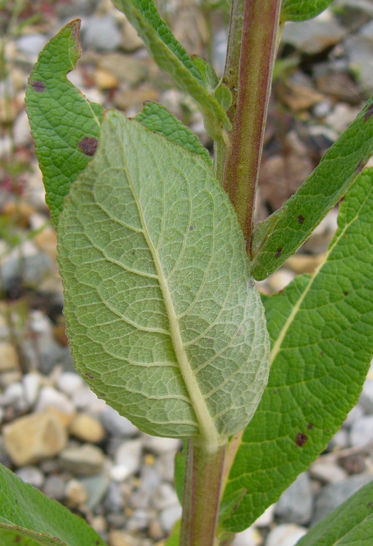 Stängel spärlich spinnwebig behaart, später im oberen Teil verkahlend, Stängelblätter lanzettlich, +/- ganzrandig, nicht herablaufend, die oberen sitzend, die unteren gestielt