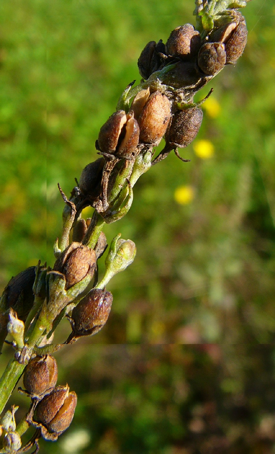 Kapsel zylindrisch, 6 mm lang, spitz, spärlich filzhaarig, verkahlend, viel länger als der Kelch