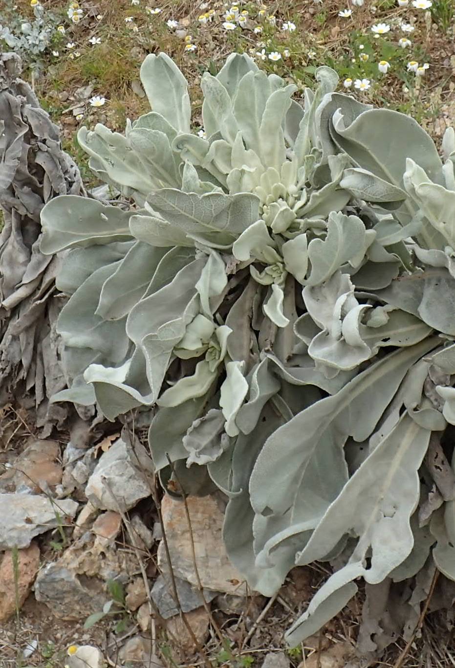 Indument von Blättern und Stängel dicht weißfilzig Stängelblätter herablaufend