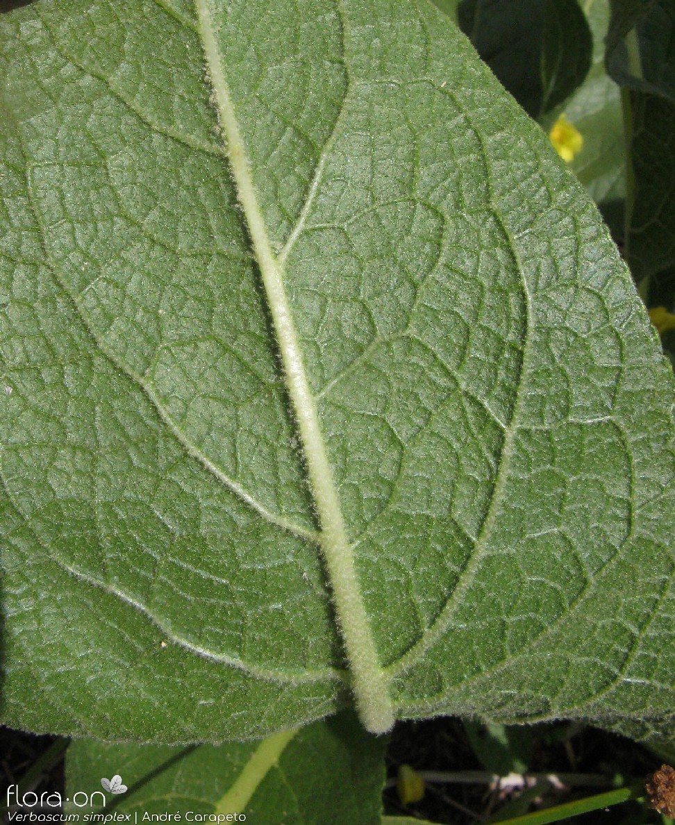 Blätter 6 - 45 cm lang, 6 - 15 cm breit, beiderseits weiß- oder gelbfilzig behaart, am Rand schwach gekerbt