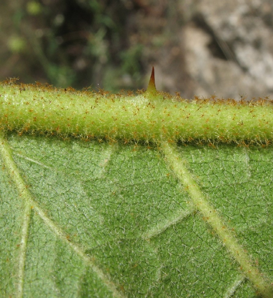 Junge Triebe mit roten Sternhaaren und +/- kurzen Stacheln