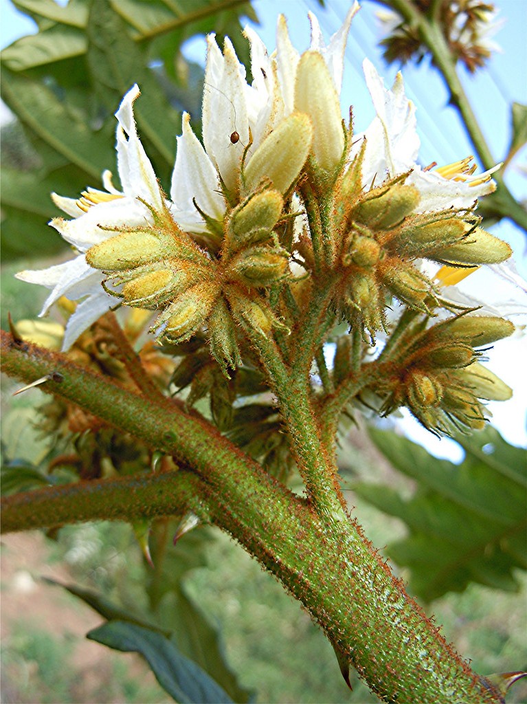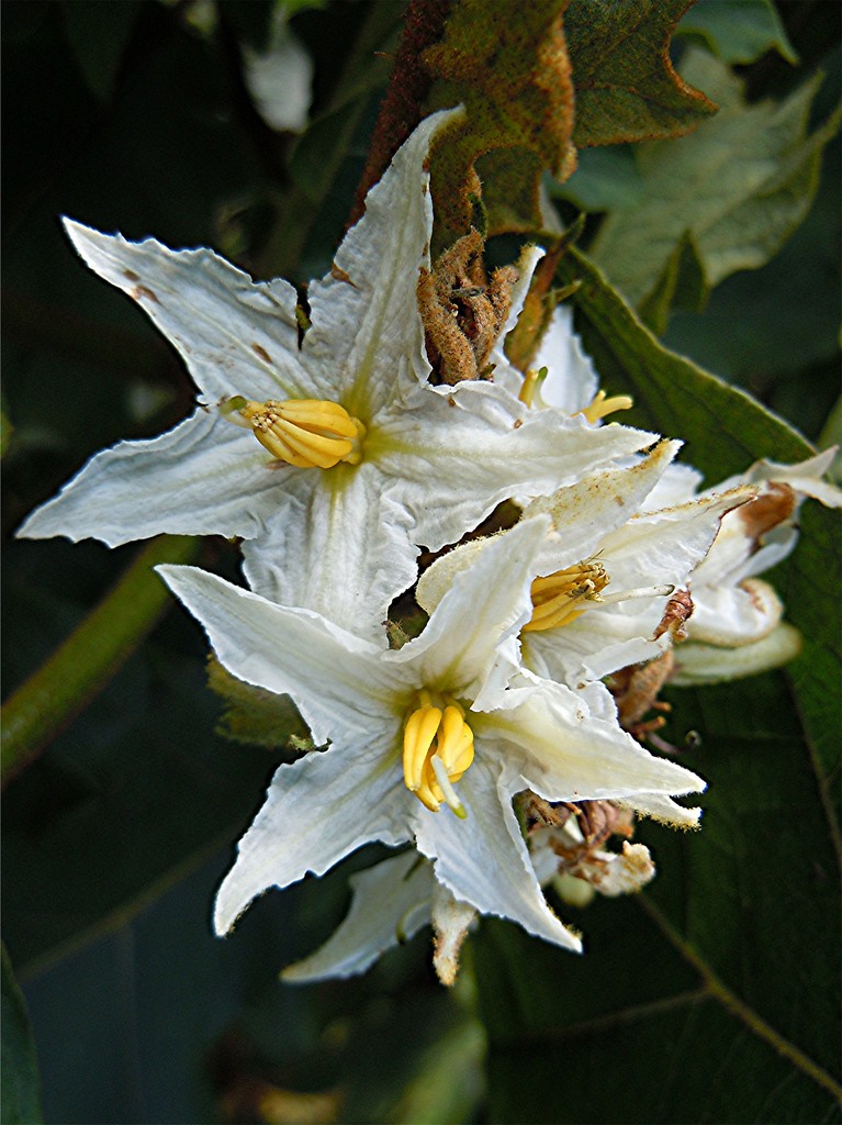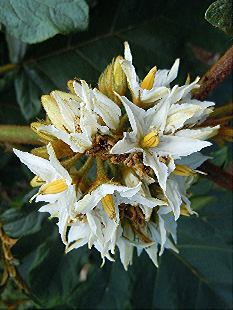 Solanum - Blüten weiß, junge Stängel mit roten Sternhaaren