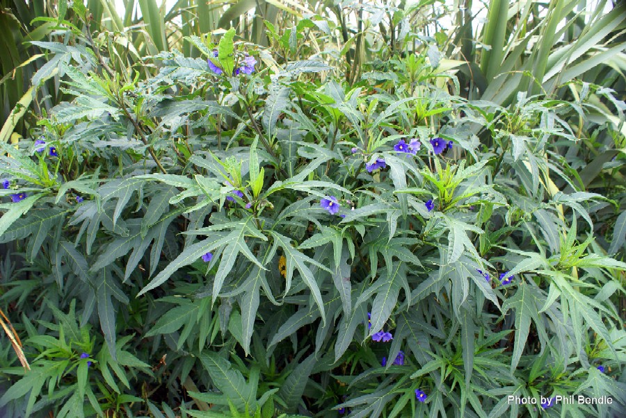 Zierpflanze (0 - 200 m) Synonyme: English name: Weltweite Verbreitung: Eingebürgert in: "Solanum laciniatum enthält große Mengen an Solasodin, einem pflanzlichen Steroidalkaloid, das als Ausgangsstoff für die industrielle Herstellung von Cortisonen und Steroidhormonen verwendet werden kann. Auch die in den Antibabypillen enthaltenen Sexualhormone werden aus solchen pflanzlichen Steroiden hergestellt. Hauptausgangsstoff für diese Präparate ist zwar das Diosgenin aus den Knollen tropischer Yams-Arten (Dioscorea), aber Schwierigkeiten im Anbau und Engpässe bei der Versorgung führten schon in den 1970er Jahren zur Suche nach Alternativen. Seither wird Solanum laciniatum vor allem in der ehemaligen UdSSR, in Osteuropa, in Neuseeland und in Indien angebaut." (aus Botanischer Garten der Johannes Guttenberg Universität Mainz)