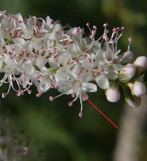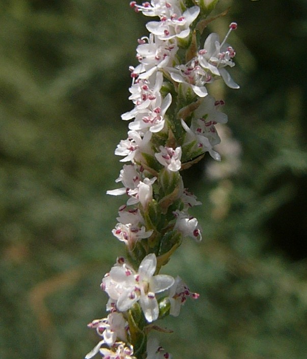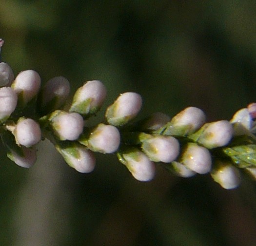 Blüten in dichten 15 - 50 mm langen, 3 - 5 mm breit Trauben