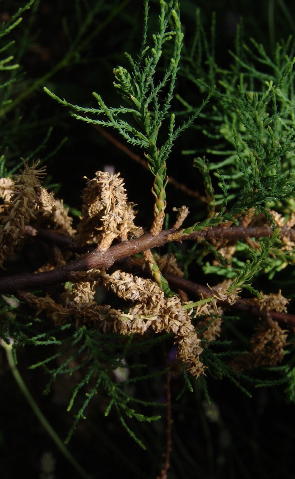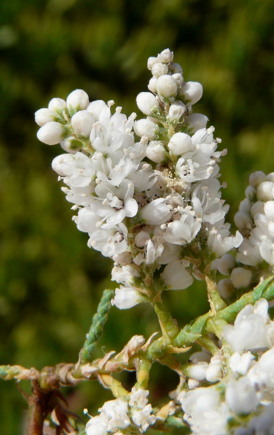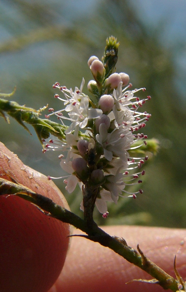 Blütentrauben 30 - 70 mm lang 6 - 8 mm breit, an braungrauen, verholzen Ästen sitzend