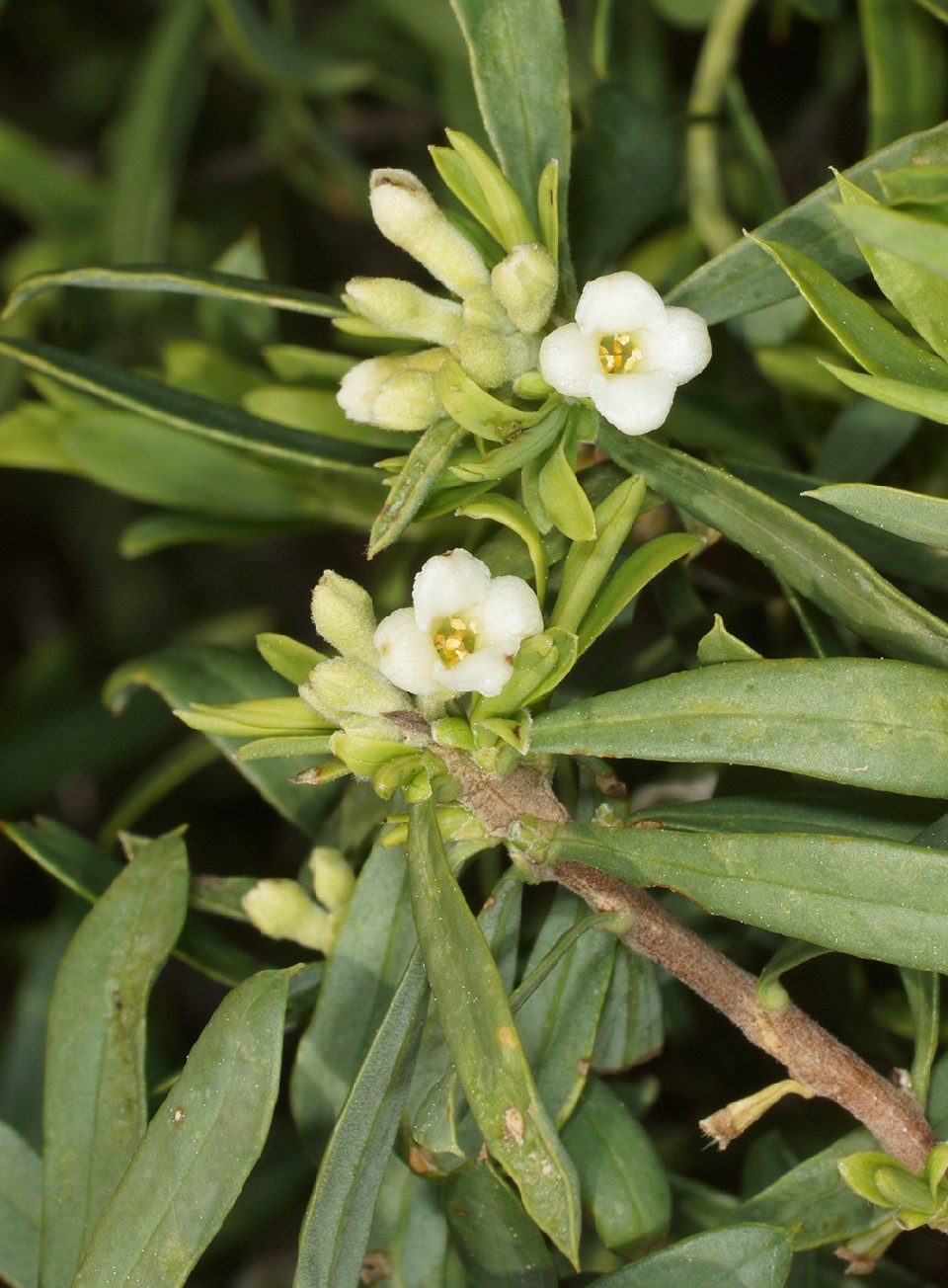Junge Blätter zumindest unterseits +/- behaart, später verkahlend Blätter 1 - 4,5 cm lang, immergrün, ledrig,