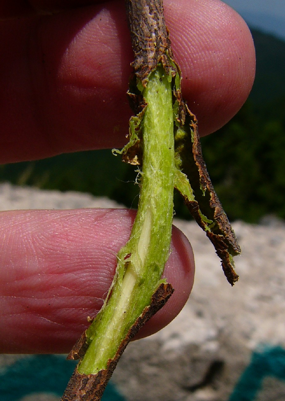 elliptisch, stumpf oder zugespitzt Stängel verholzt Entrindetes Holz weißlich