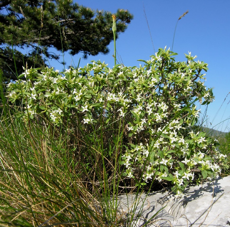 V - VI, Alpine Felsfluren (1500 - 1800 m) Synonyme: English name: Nom francais: Nome italiano: Weltweite Verbreitung: Etymologie: Bildet zusammen mit Daphne petraea den Bastard Daphne x reichsteinii