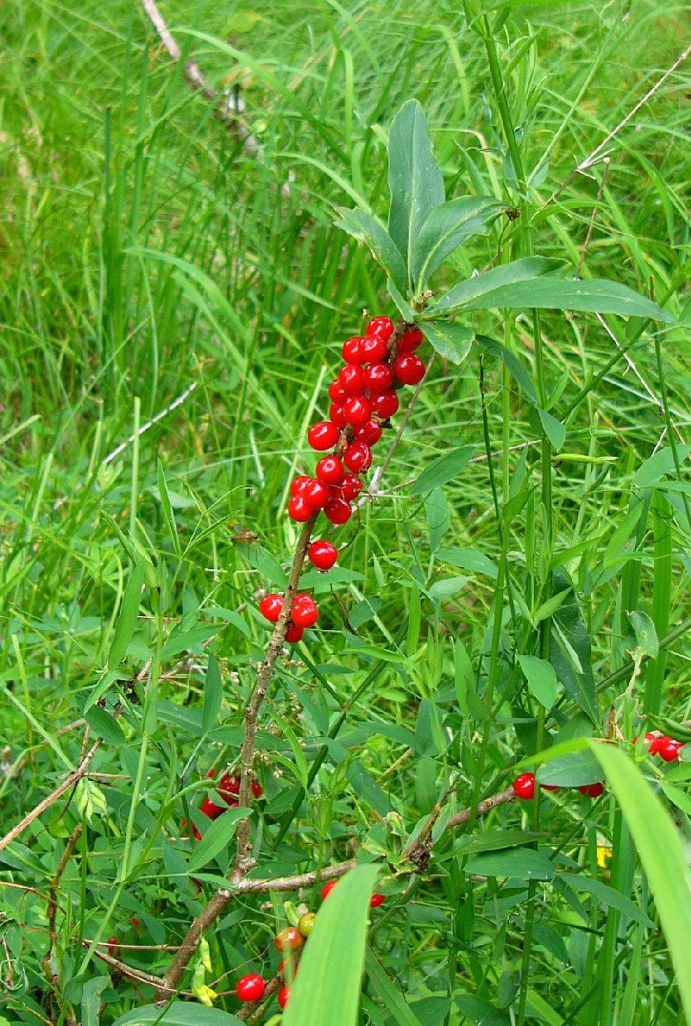Beeren eiförmig, mit schwarzem Steinkern, sehr giftig!