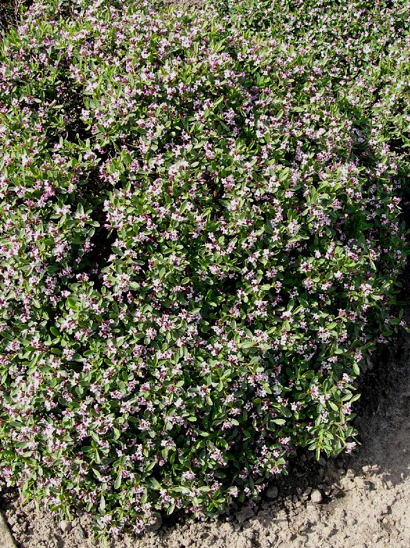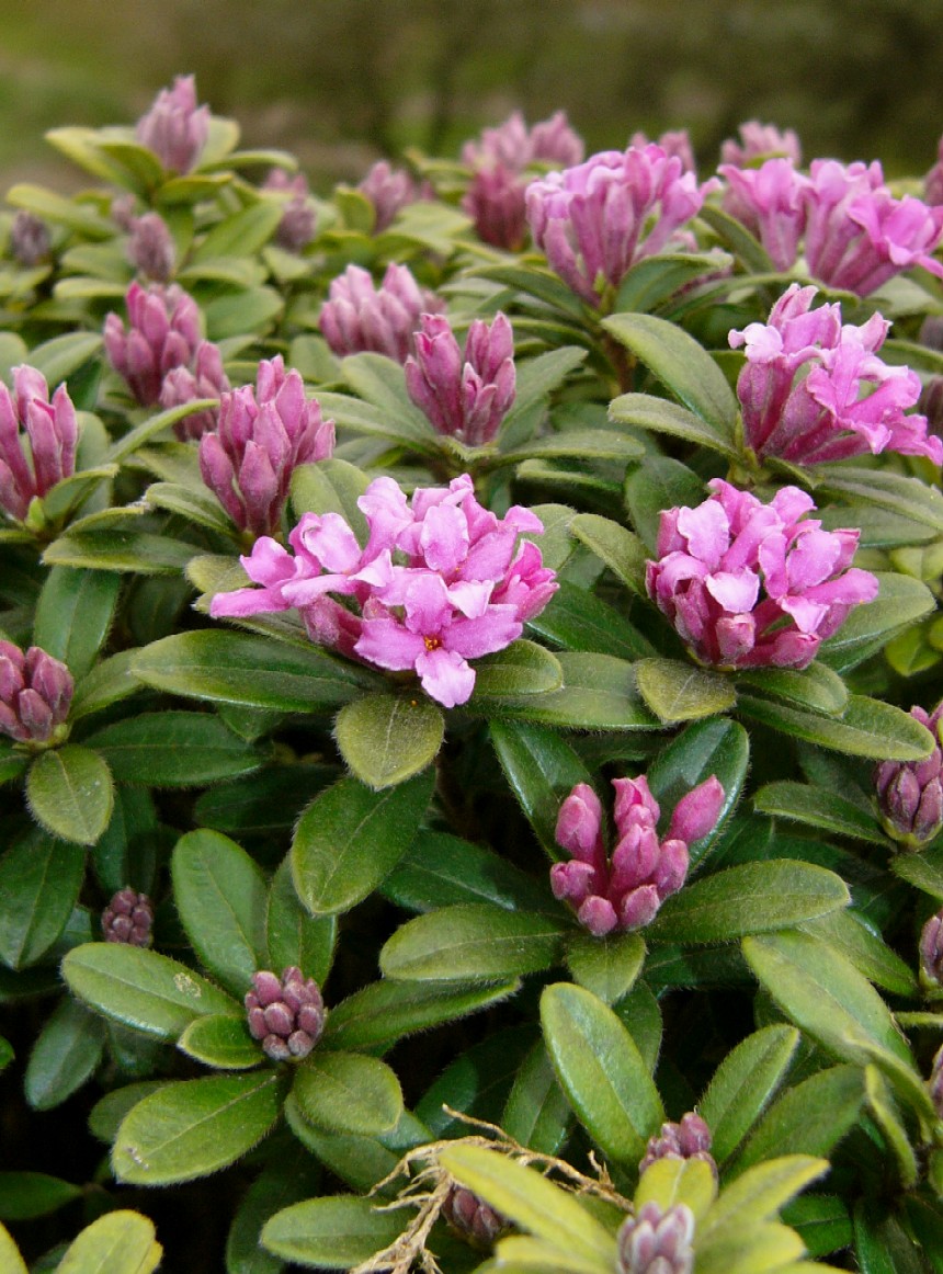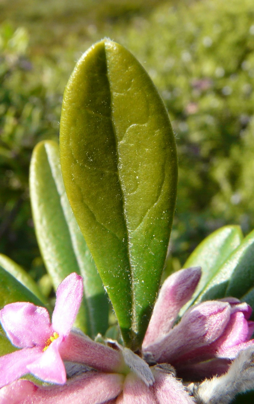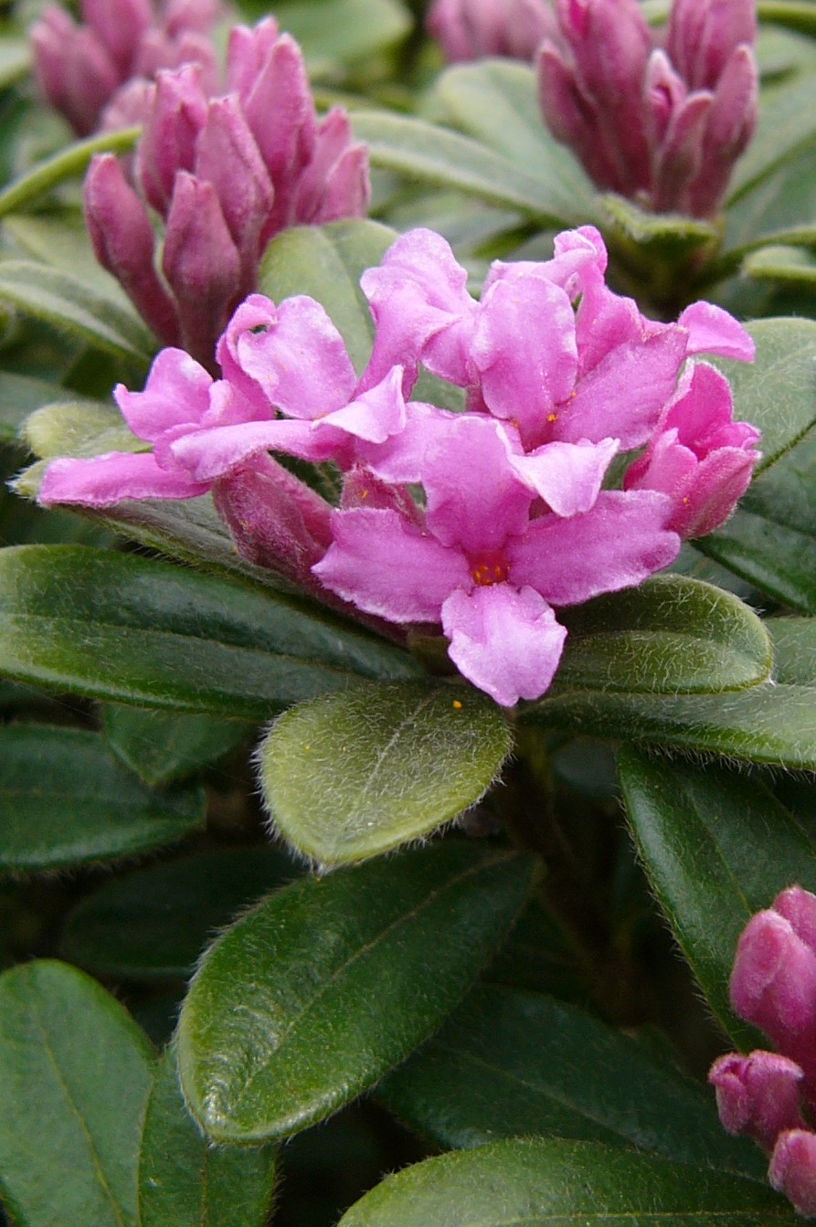 Daphne- Blüten rosa, Blätter 6 - 20 mm breit