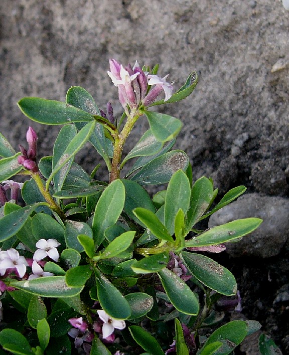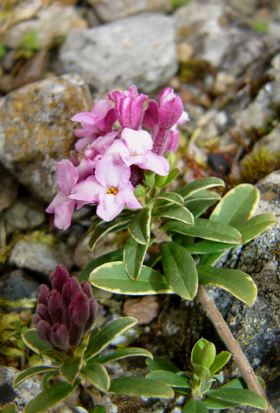 V - VII, Kalkfelsen Bastard Daphne petraea x Daphne alpina Synonyme: English name: Nome italiano: Weltweite Verbreitung: Etymologie:
