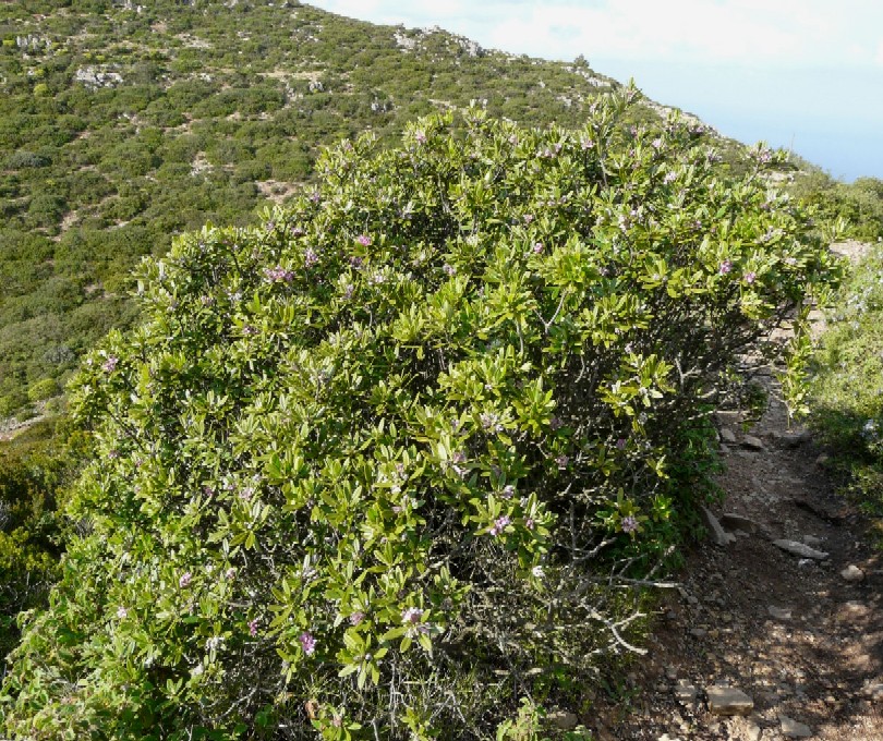 II - IV, Macchie, Phrygana, Kiefernwälder Synonyme: English name: Nome italiano: Weltweite Verbreitung: Etymologie: Daphne sericea bildet zusammen mit Daphne cneorum den Bastard Daphne x napolitana Loddiges