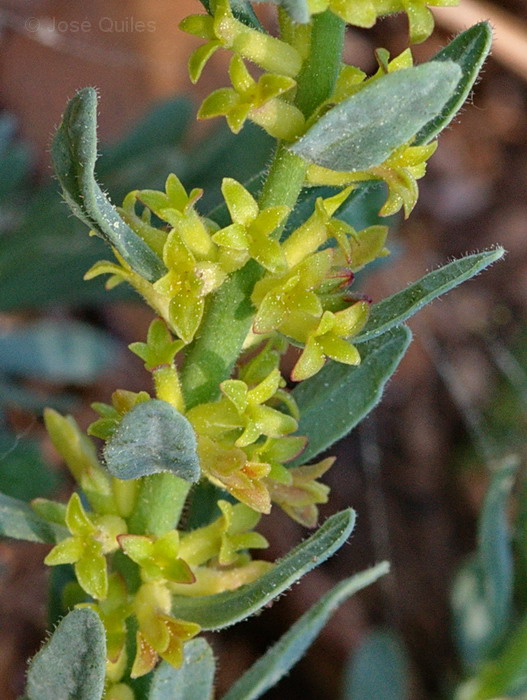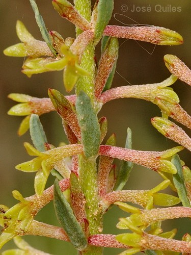 Thymelaea - Pflanze am Grund verholzt, belaubte Triebe krautig