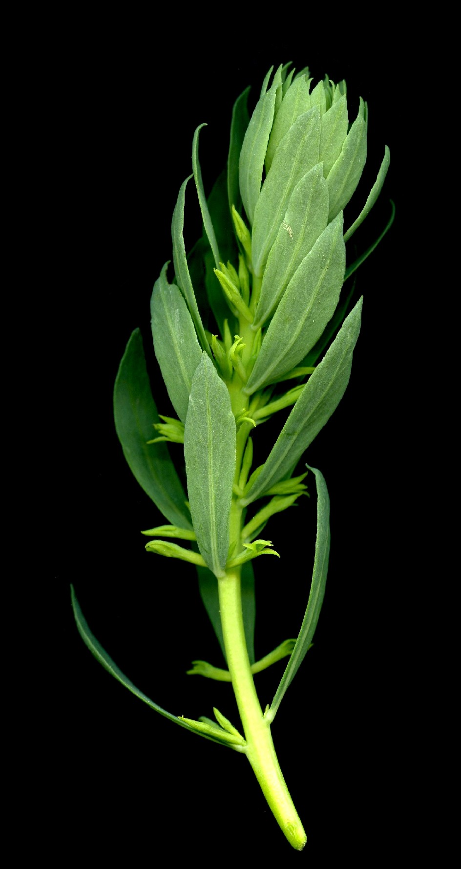 Blätter elliptisch, zugespitzt, flach, 15 - 30 mm lang, 4 - 8 mm breit, kahl