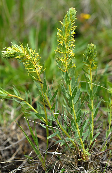 2 Blätter linealisch oder elliptisch, Blüten gelb oder braunrot, Kelchzipfel +/- stumpf