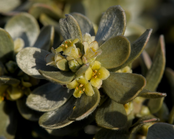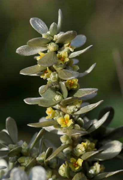 1 Blüten schuppenförmig von vielen kleinen, ovalen Tragblättern umgeben