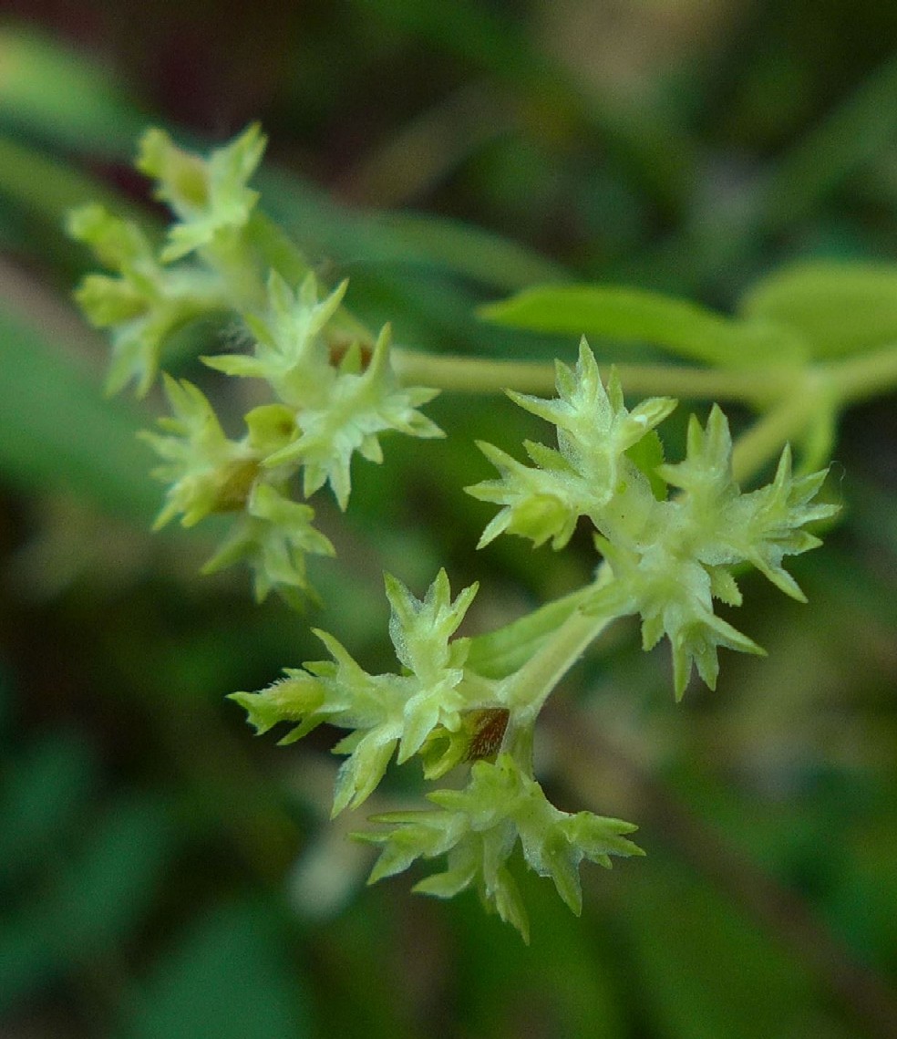 Blüten bläulich- weiß, sehr klein (2 mm) Früchte mit ohrähnlichem Fruchtkelch