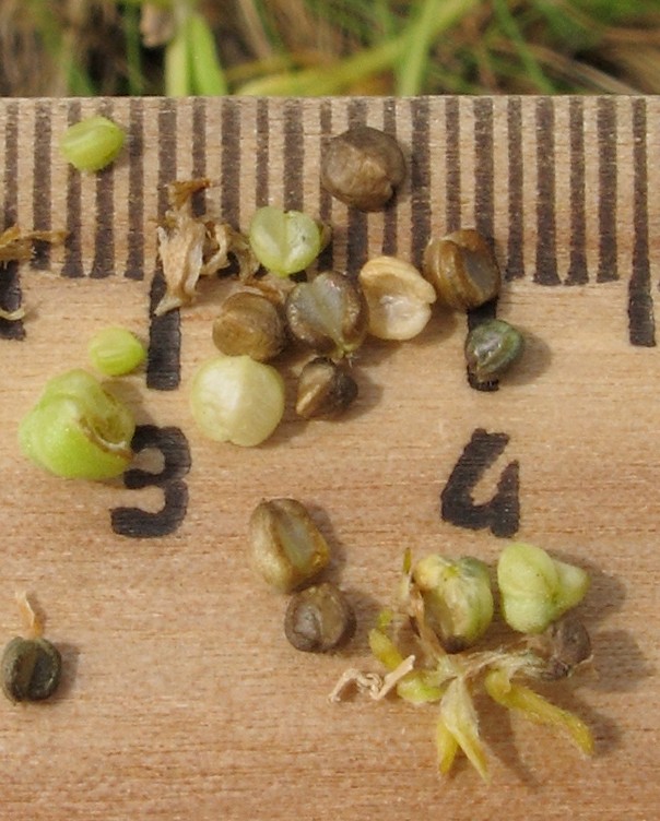 Frucht rundlich, 1,5 - 3 mm lang, dreikantig, aufgeblasen