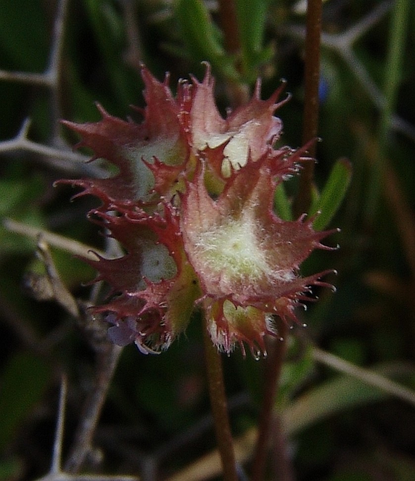 5 Zähne des Fruchtkelches meist mit 3 - 4 hakig gebogenen Stacheln