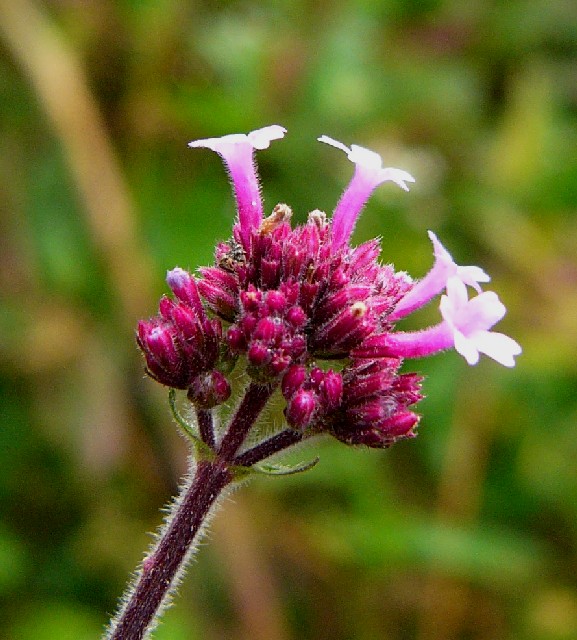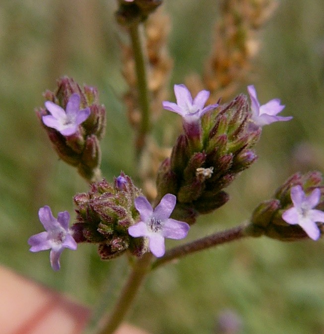 Krone 5-spaltig, blasslila, 4 Staubblätter: 2 kürzere und 2 längere