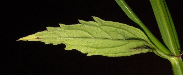 Blätter gegenständig, scharf gesägt, halbstängelumfassend