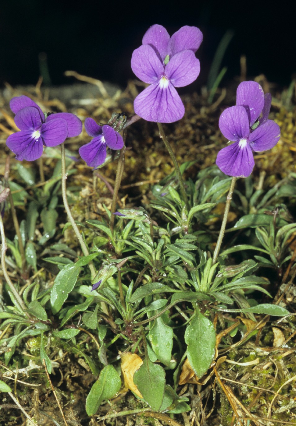 Blüten violett oder gelb, 20 - 35 mm hoch, im Umriss rechteckig