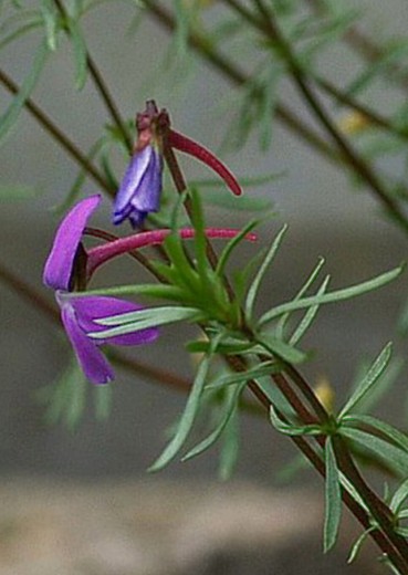 Blütenstiel bis 6 cm lang, rot, Sporn sehr schlank, 20 - 30 mm lang