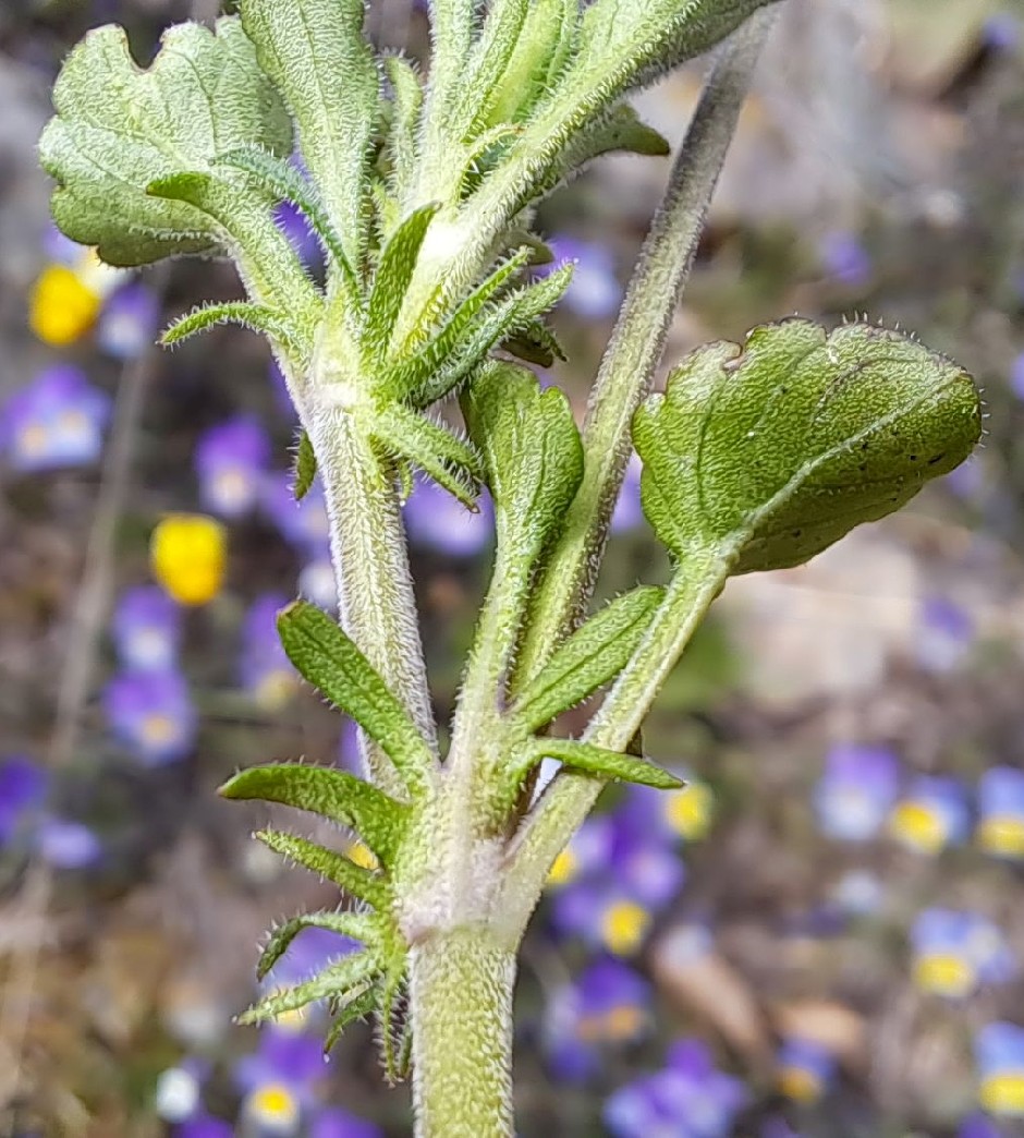 Stängel dicht behaart, obere und mittlere Blätter eiförmig bis breit lanzettlich, gekerbt, am Grund keilig, dicht behaart, Nebenblätter fast handförmig geteilt mit linealisch- lanzettlichen Abschnitten, Mittelabschnitt lang gestielt, blattähnlich