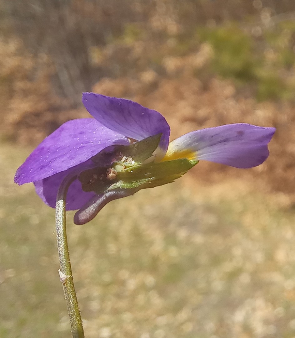 Kelchblätter lanzettlich, spitz, auf der Fläche kahl, am Rand oft dicht bewimpert, kleinen Zähnchen, Sporn 8 - 12 mm lang, schlank, kahl, gerade oder schwach gebogen