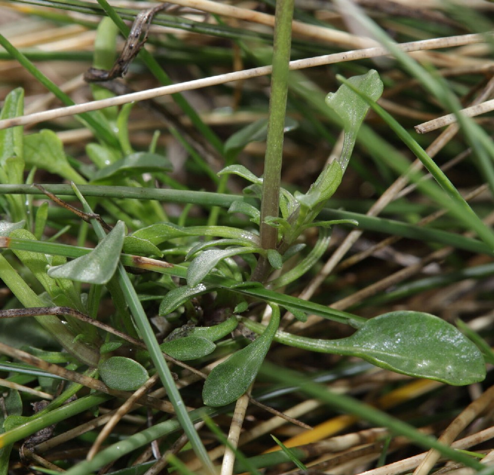 Untere Blätter 15 - 30 mm lang, behaart, Blattspreite eiförmig, gekerbt, deutlich vom Blattstiel abgesetzt, Blattstiel so lang oder länger als die Blattspreite