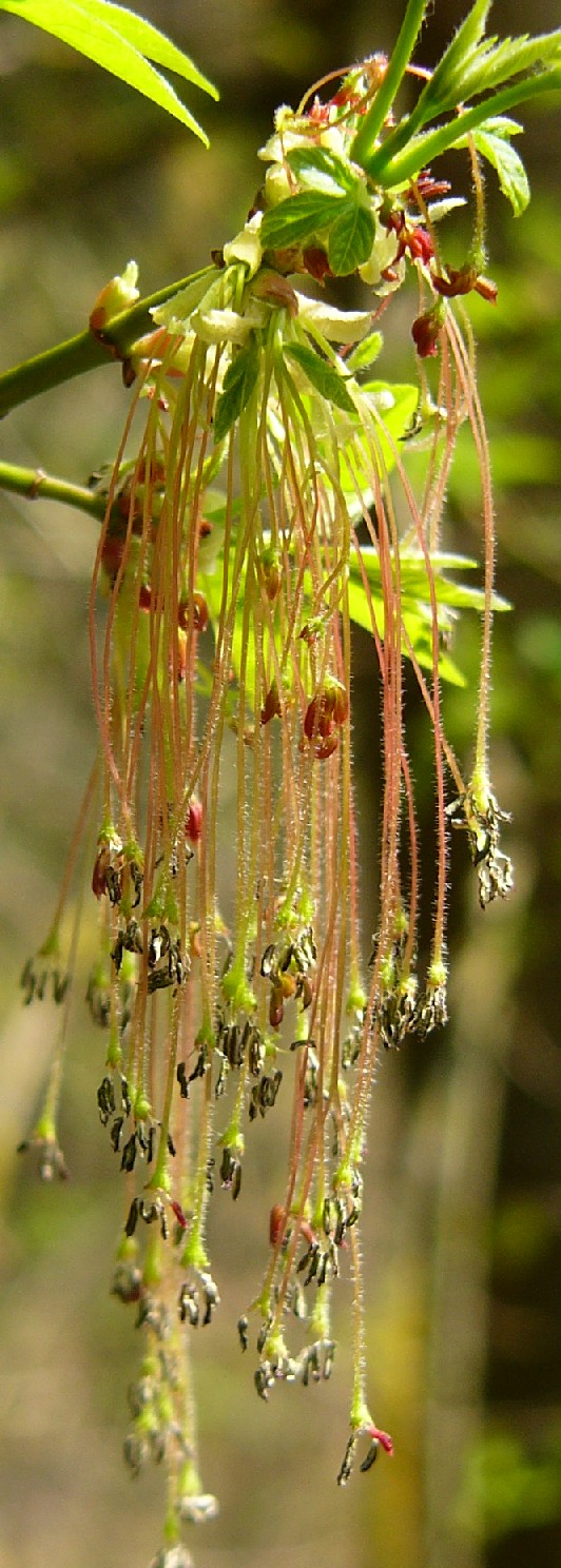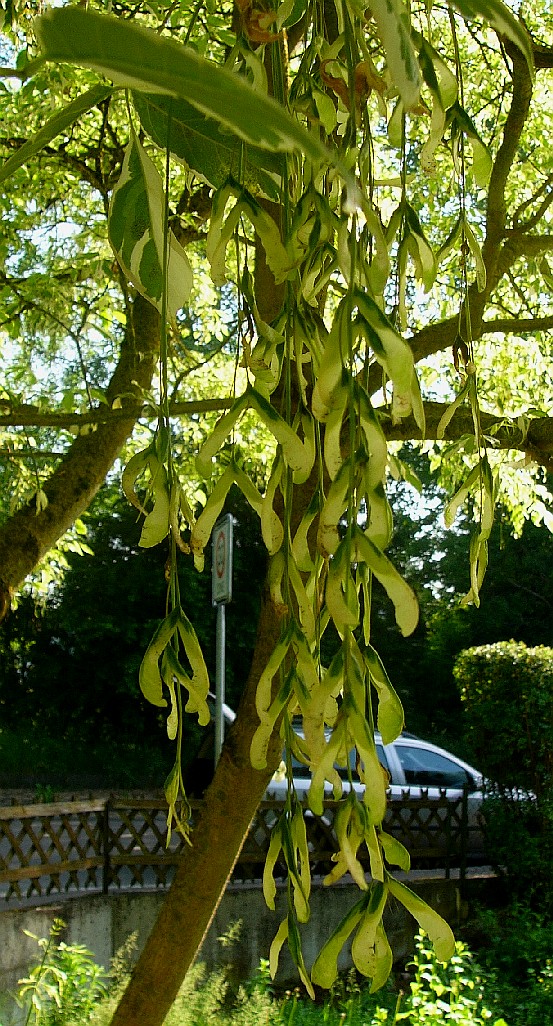 häusig, Blüten hängend, unscheinbar Früchte gewinkelt > Eschen- Ahorn (Acer negundo)