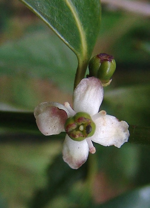 mit 4 Kronblättern, zweihäusig, männliche Blüten mit 4 Staubblättern Beeren kugelig > 1