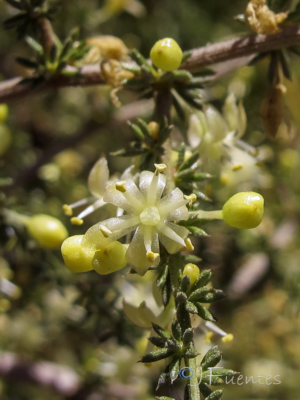 Blüten klein (4 mm), mit 7 mm langem Stiel, weißlich oder gelblich- grün