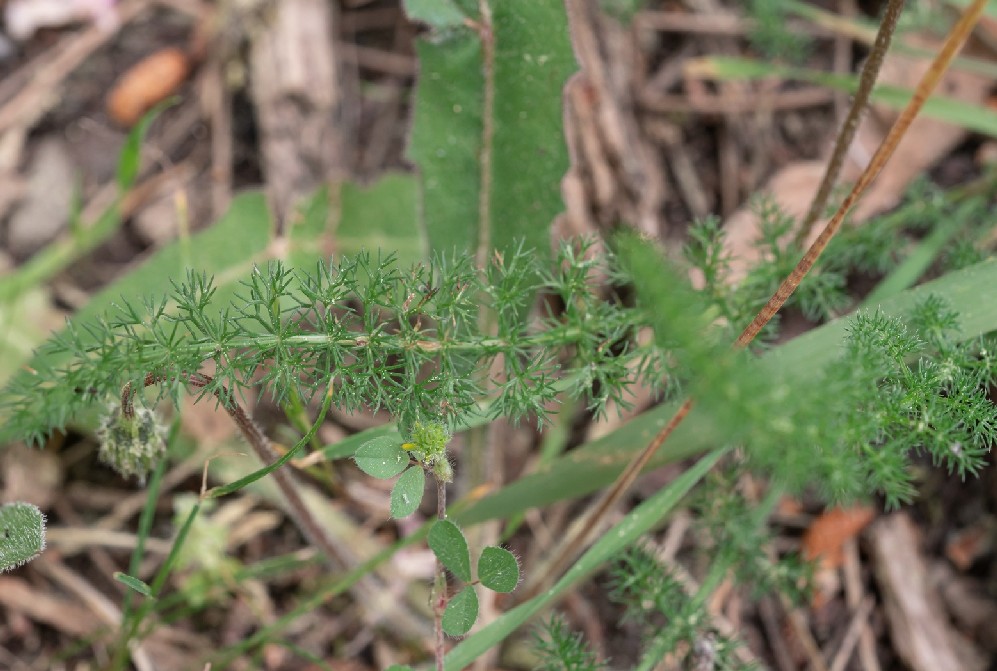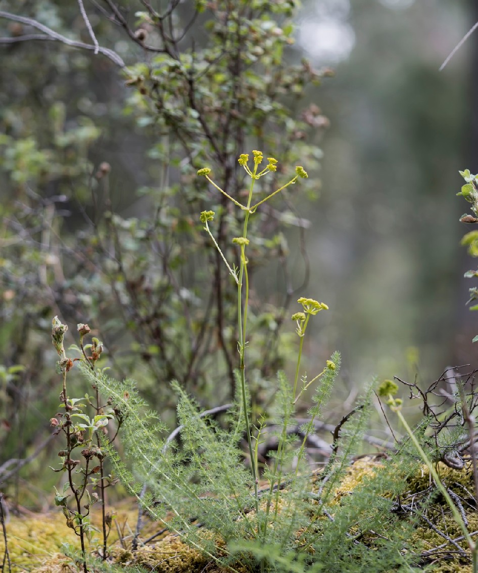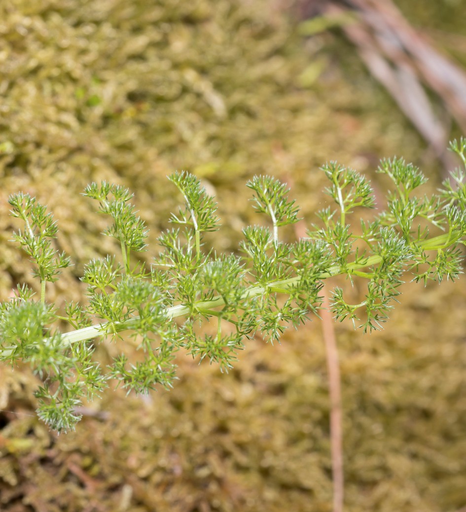 Untere Blätter 10 - 25 cm lang, 1 - 3 cm breit lang, 3 -fach gefiedert, fein zerschlitzt