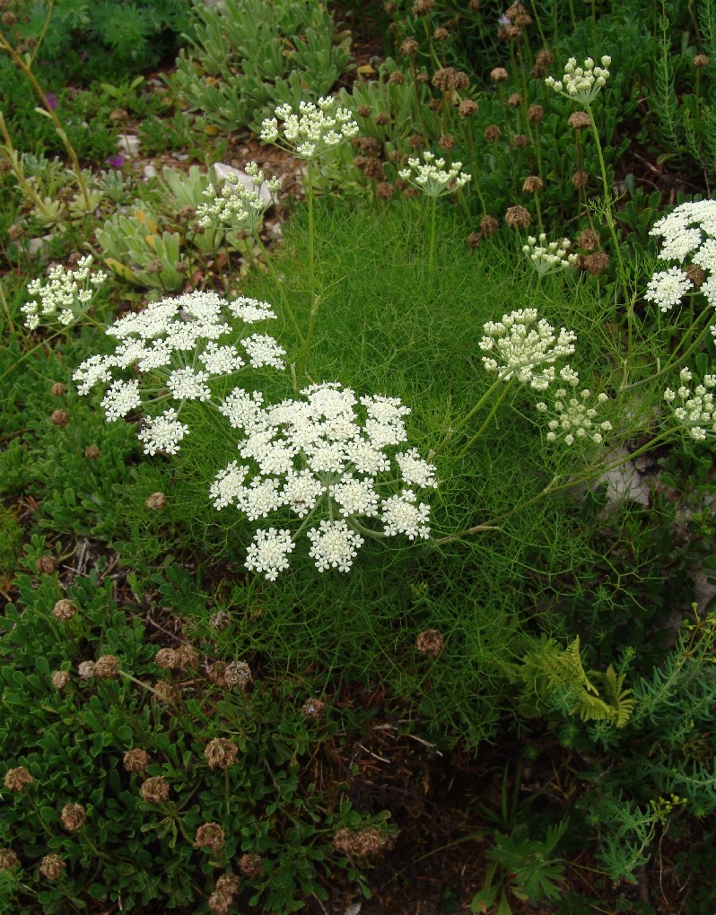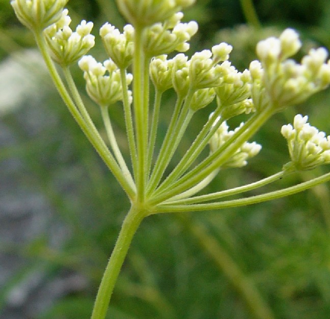 Pflanze 20 - 50 cm groß Dolde mit 30 - 50 Doldenstrahlen Griffel an der Frucht spreizend, Griffelpolster 1,5 - 2 mal so lang wie breit Blätter kahl, selten etwas behaart, Blattzipfel ca. 25 mm lang