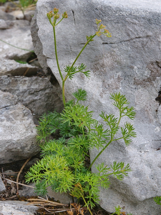 Verbreitung: Pyrenäen Pflanze 20 - 40 cm hoch Früchte mit wenig ausgeprägten Rippen Endfiedern 5 - 15 mm lang, 0,5 mm breit > 2