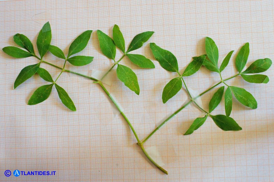 Blättchen schmal elliptisch, 3 - 3,5 mal so lang wie breit, 0 - 2 mm lang gestielt