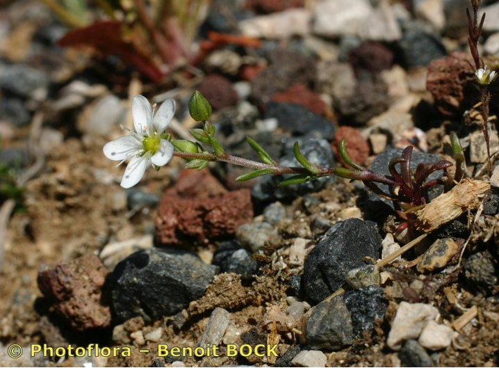 Blüten weiß, Kronblätter 5 - 9 mm lang, vorne abgerundet, länger als die Kelchblätter, meist nicht deckend, Staubblätter ca. 1 mm lang, Staubbeutel weiß oder rosa