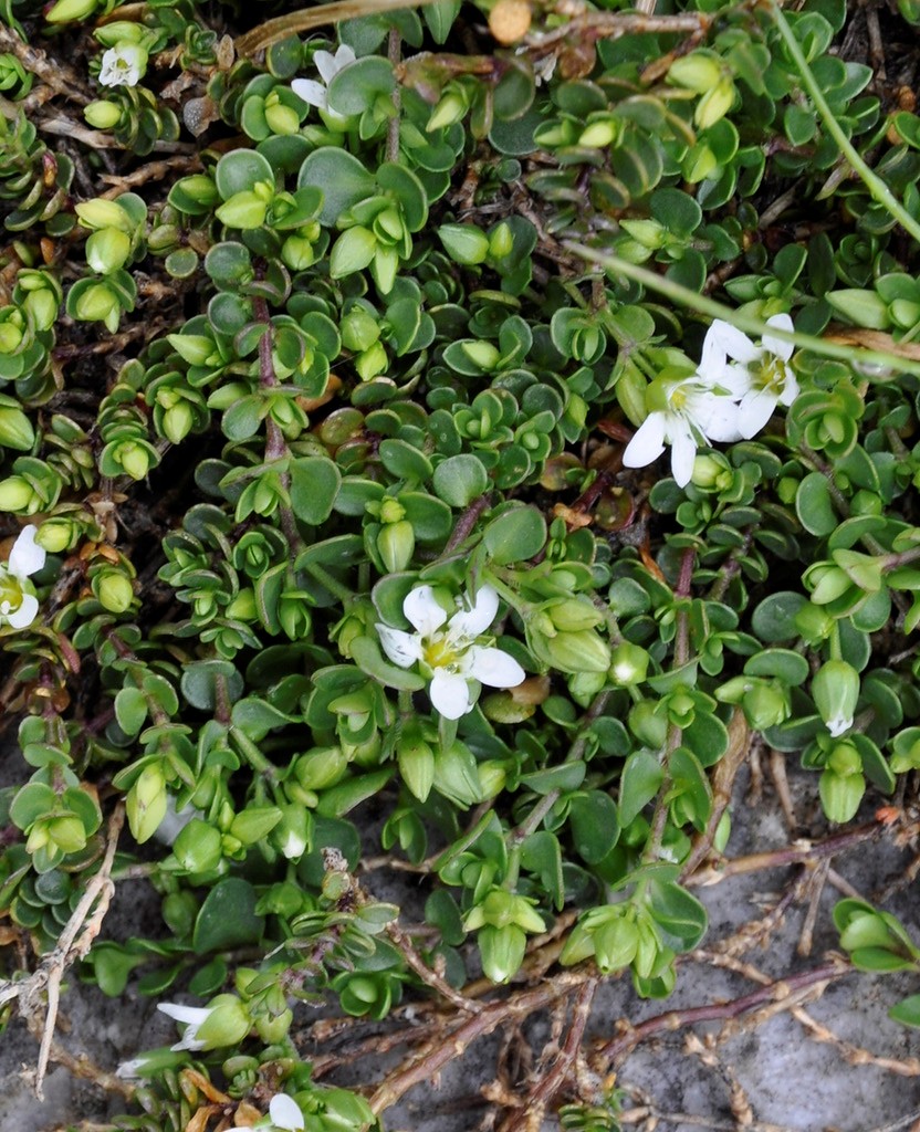 Blätter rundlich, 2 - 5 mm lang, 2 - 3 mm breit stumpf,