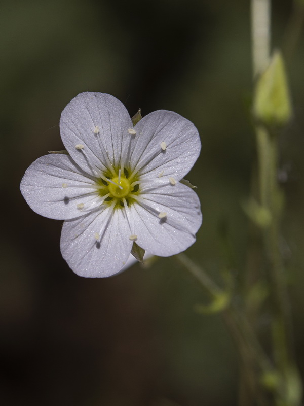 Blüten weiß, geadert, Kronblätter 8 - 14 mm lang, länger die Kelchblätter, rundlich,