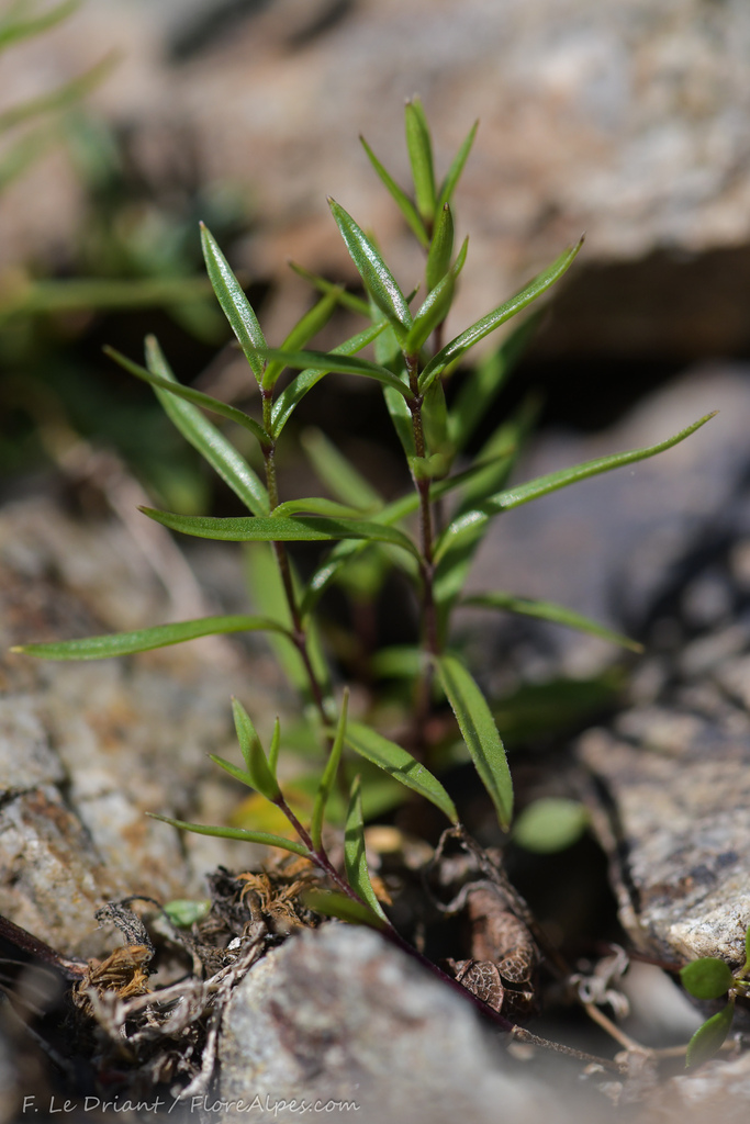 Nichtblühende Triebe niederliegend, lanzettlich, spärlich zottig behaart, bald hinfällig