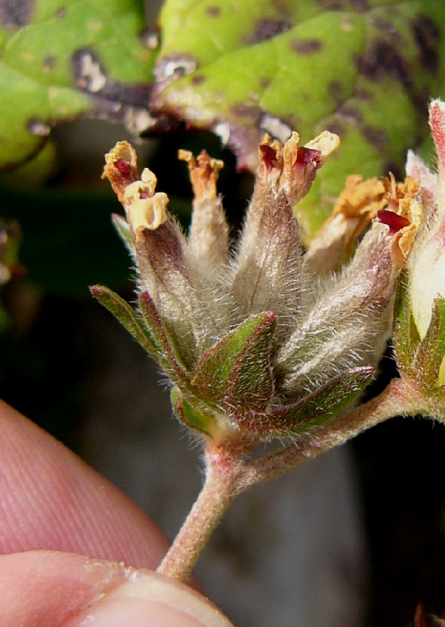 Kelch abstehend behaart, Haare weiß, trocken grau