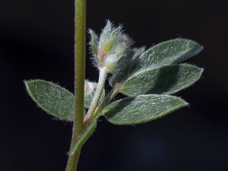 Blattstiel und Blätter beiderseits dicht seidig behaart