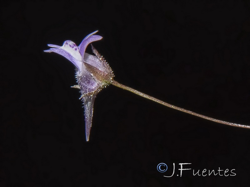 Sporn deutlich gebogen, Blütenstiele zottig behaart,
