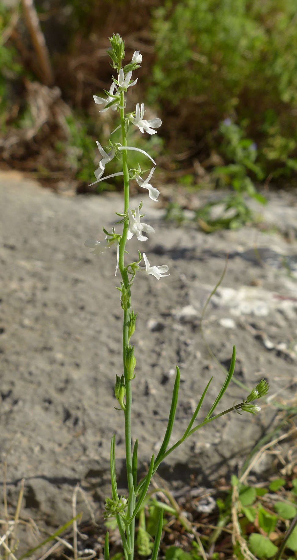 ähnlich Gymnadenia (Händelwurz) Blüten rein weiß, mit langem, dünnen, gekrümmten Sporn Unterlippe in 3 lange Lappen geteilt > Linaria chalepensis